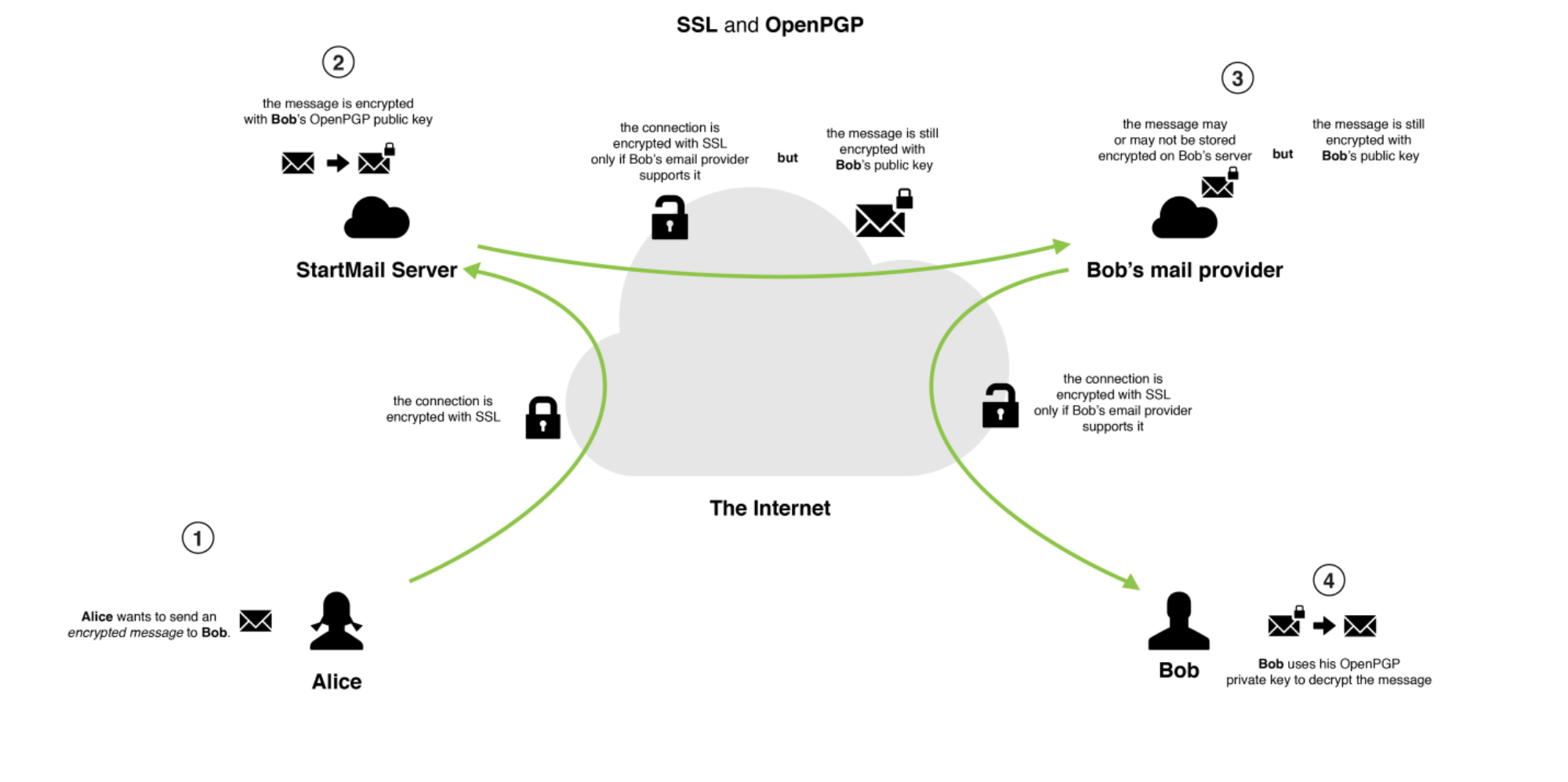 - Asymmetric encryption and signing using OpenPGP to both StartMail and non-StartMail users